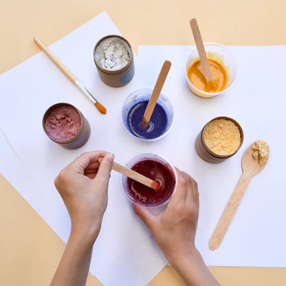 No Nasties Natural Plant Paint™️ is a game changer - simply add water to mix and match your application - finger paints, watercolour and poster paint. You can also add the paint powder to colour homemade sensory bases such as slime, sensory rice or oobleck!